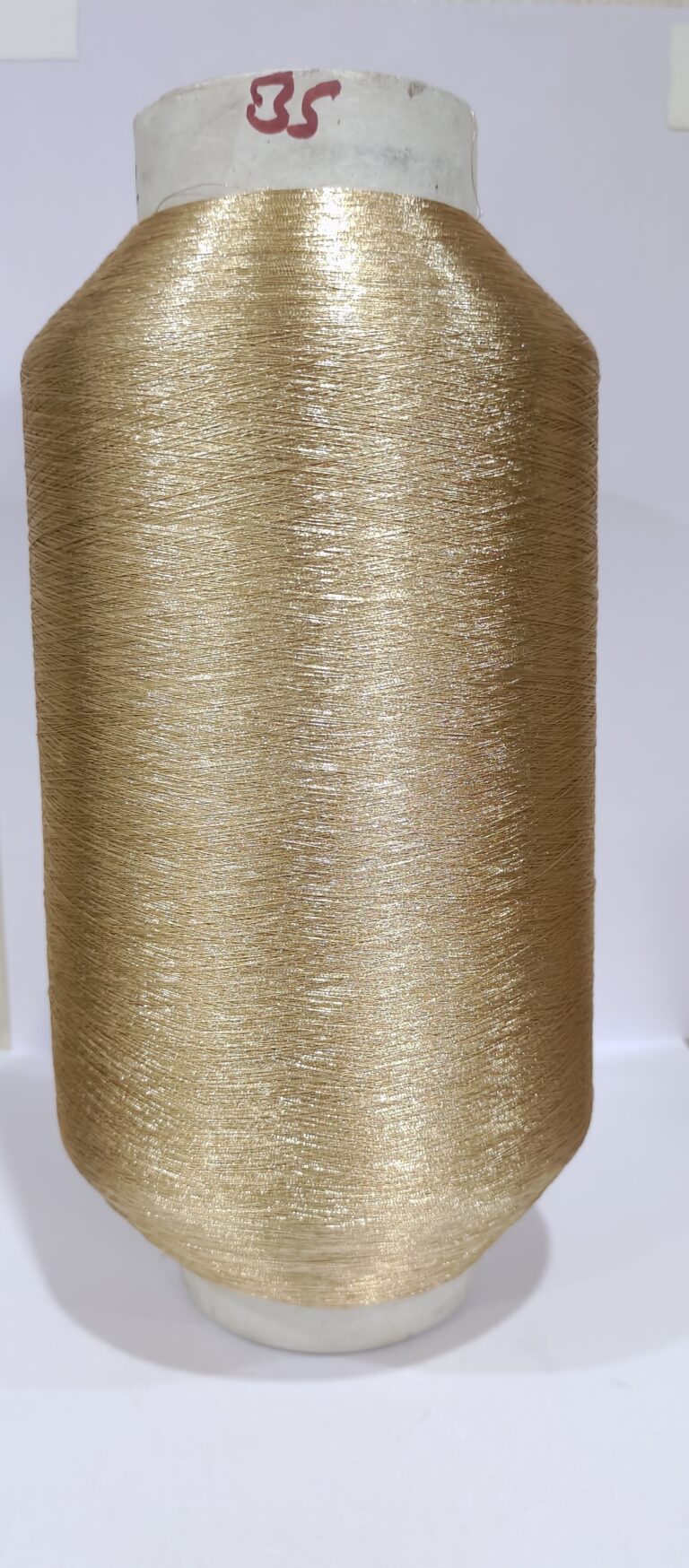 MH-type metallic yarn is made by combining M Type metallic yarn by twisting over Viscose rayon 120D or polyester filament yarn 150D. This type of yarn is soft and has sober brilliant impact when compared to MH-type metallic yarn alone.